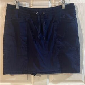 Stylish navy mini skirt. Features drawstring waist. Perfect for casual outings.