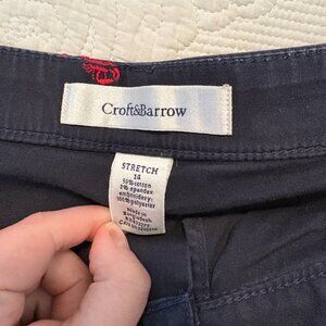 Navy Croft & Barrow skort with fun red embroidered lobsters. 98% cotton and easy to wear for warm-weather days, vacations, or casual outings. Size 14. Measurements shown in photos.