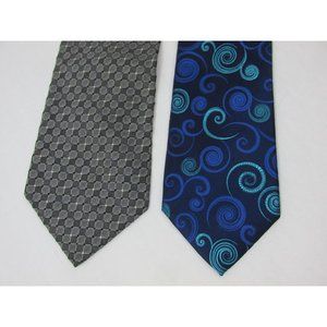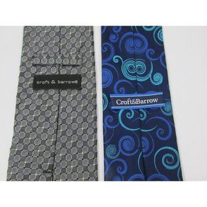 Croft & Barrow Neck tie Men's lot of 2 Silk geometric swirls blue teal squares gray silver