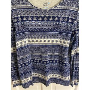 Croft & Barrow 100% cotton long sleeve crewneck classic tee with blue and white Nordic winter print. In good condition!