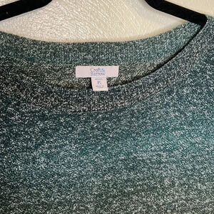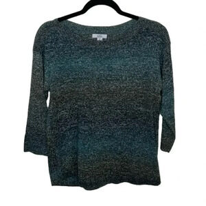 Croft & Barrow Ombré Green 3/4 Crewneck Knit Light Sweater Petite Small