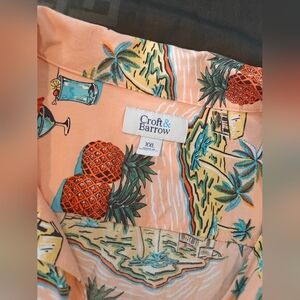 🤍Croft & Barrow Peach Tropical Button Up Collared Men's Vacation Shirt Size XXL