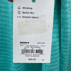 Croft & Barrow Performance Womens Aqua Mock Neck Wicking SweatShirt Top XXL NEW