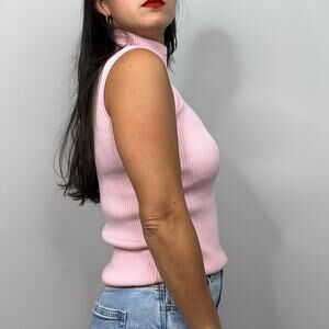 Croft & Barrow Pink Sleeveless Mockneck Ribbed Sweater. Excellent condition with no signs of wear. Some stretch. Not sheer material. Great layering piece. k38
