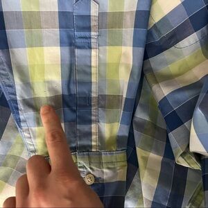 Croft & Barrow plaid button-down dress shirt in yellow, blue, green, and white.