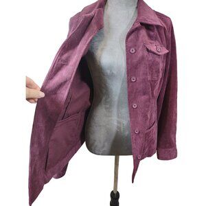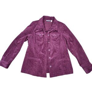Croft & Barrow Plum Corduroy Jacket Button Front Collared Pockets Stretch Medium