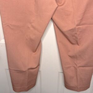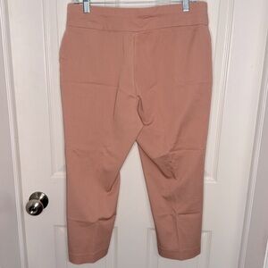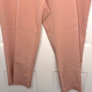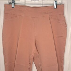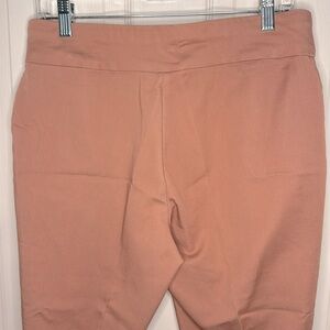 Croft & Barrow Pull On Capris, size 10. ‘The effortless stretch capri’. Color is light pink. Non-functional pockets in the front, nothing in the back. Fabric has a lot of stretch and is 55% cotton, 31% polyester, 12% rayon and 2% spandex.