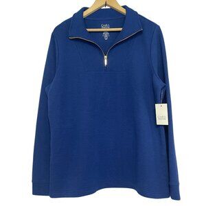 Croft & Barrow Pullover Sweater Jacket NWT Womens Size L Blue Cotton Athleisure