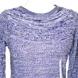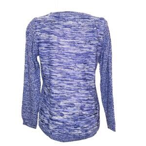 Croft & Barrow Purple Tri Color Marled Multi Knit Sweater. Two tone purple and white. Size Small. Front has multi types of patterns; back is solid. Round hem. Measurements taken laying flat: