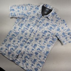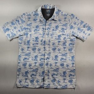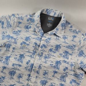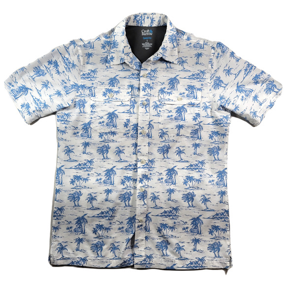 Croft & Barrow Quick Dry Shirt Mens Small Tropical Print White Blue Fish