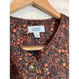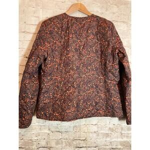 Croft & Barrow Quilted Jacket Womens Medium Rust Brown Floral Lightweight Pocket