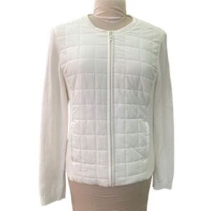 Croft & Barrow Quilted Sweater/Jacket Winter White Sz. L Full Zip