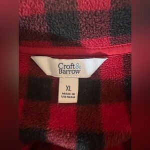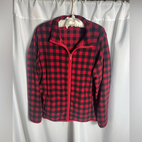 Croft & Barrow Red Black Buffalo Plaid Full Zip Fleece Jacket Coat XL Warm