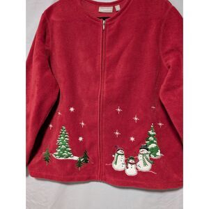 Croft & Barrow Red Fleece Zip Jacket Winter Snowman Holiday New Women's Plus 1X