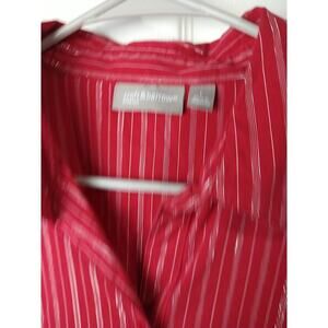 Croft &Barrow Red Silver Metallic Striped Long Sleeve Fitted Blouse. Size L