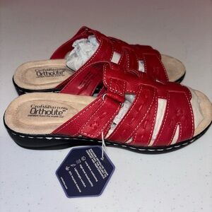 Stylish red sandals with a comfortable fit. Perfect for casual outings.