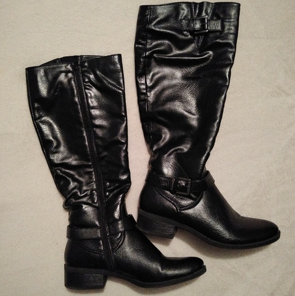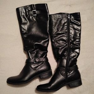Croft & Barrow Riding Boots. Man-made materials, zips up, buckle details. Minor wear as seen in pics, otherwise in very good pre-owned condition.
