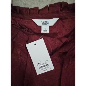Croft & Barrow Ruffle-Neck Dress Victorian Midi Dark Red Floral Women's Size S