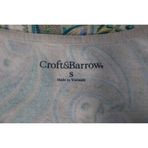 This Croft & Barrow short-sleeve top, featuring a teal and lavender paisley print, offers a stylish blend of comfort and sophistication for everyday wear.