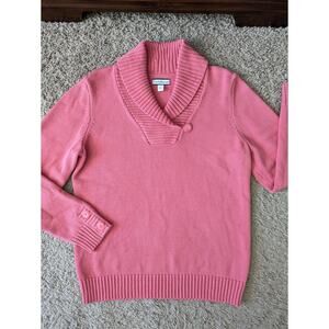 Croft & Barrow Shawl Collar Sweater Womens XL Pink Barbiecore Cottage Coquette Granny Heavy Knit Preppy Old Money
