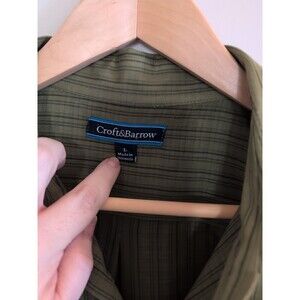 Dress up or dress down with the versatile Croft & Barrow Men's Long Sleeve Button-Up Shirt, a wardrobe staple that promises comfort and style. The classic striped design in a fresh green hue makes it an ideal choice for any casual occasion, while the knit polyester fabric offers a breathable and lightweight feel that's perfect for every season. Functionality meets fashion with features like easy-care, machine-washable convenience and a handy button closure. Its regular fit ensures a comfortable and flattering silhouette, complete with a smart point collar that adds a touch of sophistication to your ensemble. Whether it's for a day at the office or a weekend outing, this shirt brings a timeless look to your collection.