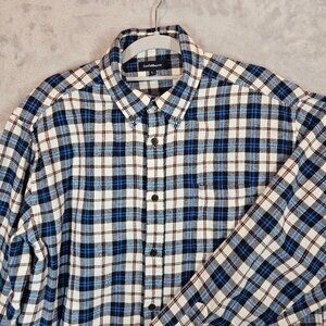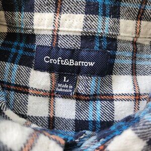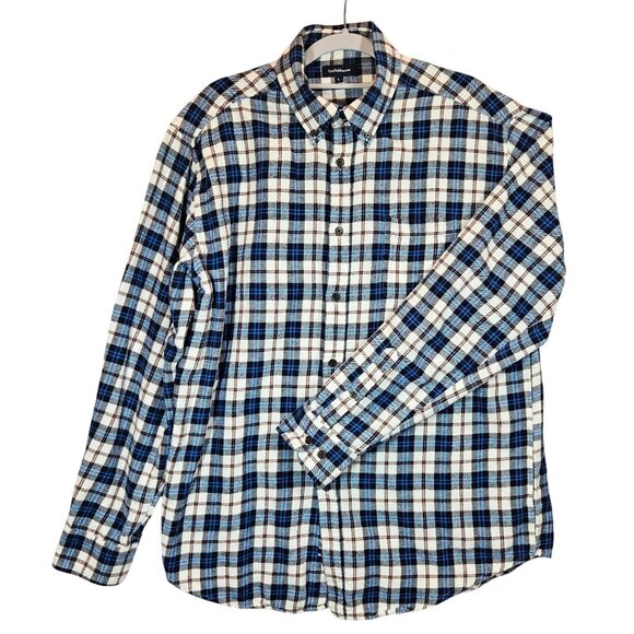 Croft & Barrow Shirt Plaid Flannel Cotton Mens L Button Blue White casual dad