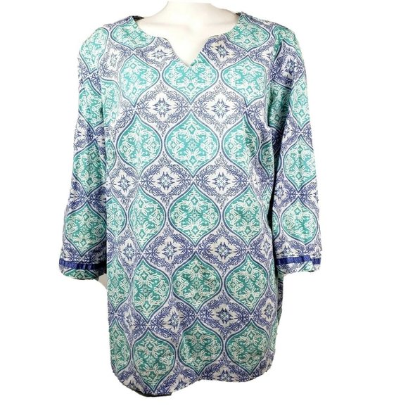 Croft & Barrow Shirt Womens Size L Large Blue and Purple 3/4 Sleeve Tunic Top