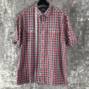Croft & Barrow Size L Quick Dry Plaid Casual Button Shirt Red Gray Short Sleeve