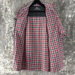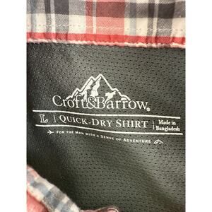 Croft & Barrow Size L Quick Dry Plaid Casual Button Shirt Red Gray Short Sleeve