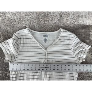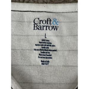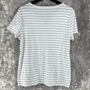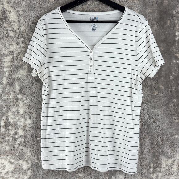 Croft Barrow Size L Striped V Neck Minimalist Casual Top White Short Sleeve