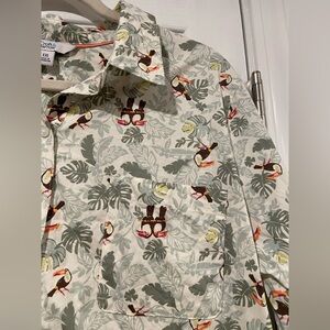 Croft & Barrow Size XXL Tropical Palm Toucan Print Cotton Button Down Shirt
