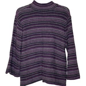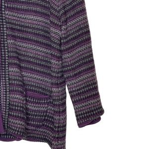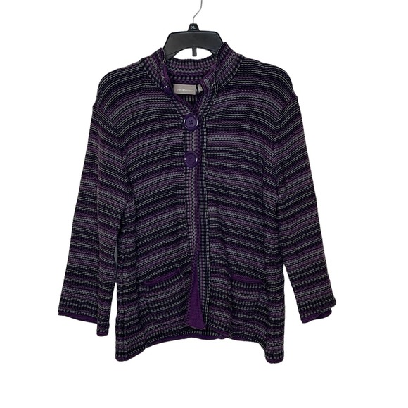 Croft & Barrow Snap Button Cardigan Sweater Knit Purple Striped Women's Large