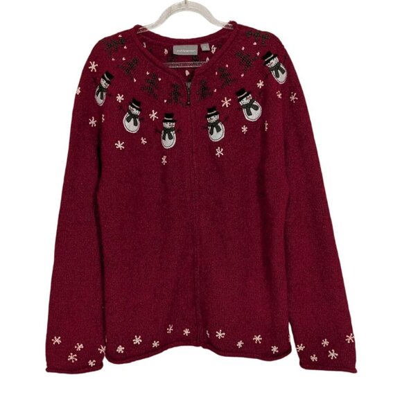 Croft & Barrow Snowman Sweater Womens Size XL Red Silk Wool Blend Full Zip