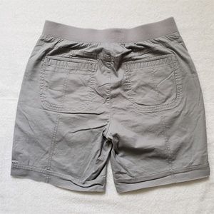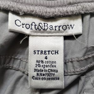 Cute Crot & Barrow stretch shorts with ribbed elastic waist (starting at the inner side of front pockets). Zippered fly and button closure. 4 pockets, fauz cuff on hem with nice rivet embellishments. Comfortable fit with enough stretch to move with you. EUC