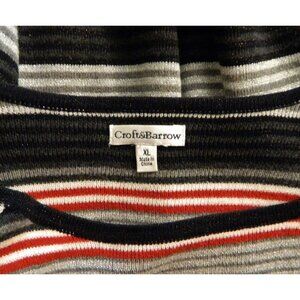 Croft & Barrow Striped Knit Top XL Black Silver Red Gray Scoop Neck 3/4 Sleeve