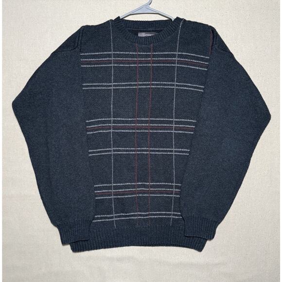 Croft & Barrow Sweater Mens Sz Medium Gray Knit Striped Pullover Preppy Business