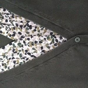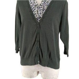 Croft and Barrow Knit Faux Cardigan sweater Olive green with fake collared insert and fake buttons. 100% cotton. Size Large