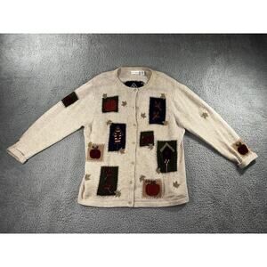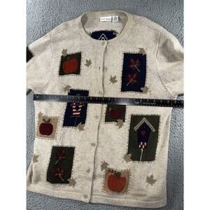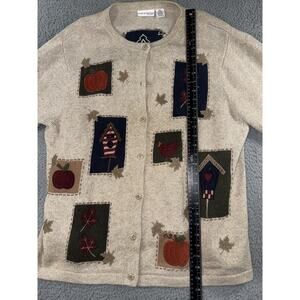 Croft & Barrow Sweater Women 2X Patch Work Wool Angora Heavy Weight Button Front