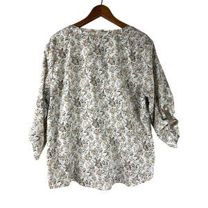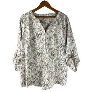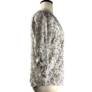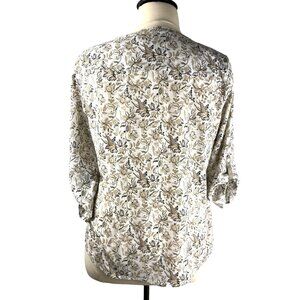 This Croft & Barrow Blouse is a women's X-Large pullover with a stylish V-neck design. It features an attractive flower pattern in cream, beige, and brown colors, adjustable sleeves, and lightweight, comfy material.
