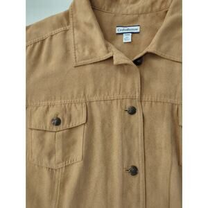 Croft & Barrow Tan Microsuede Long Sleeve Button Up Collared Shirt Women Size 3X