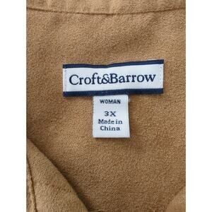 Croft & Barrow Tan Microsuede Long Sleeve Button Up Collared Shirt Women's Size 3X