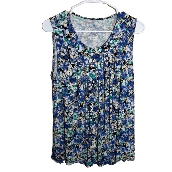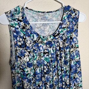 Croft & Barrow Tank Top Women's Large Blue Floral Sleeveless Round Neck Printed