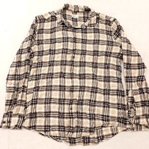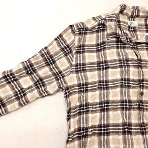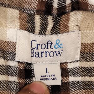 Croft & Barrow Tartan Flannel Button Up Shirt Mens Size Large L Beige White