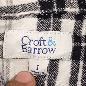Croft & Barrow Tartan Flannel Casual Button Up Shirt Mens Size S White Black