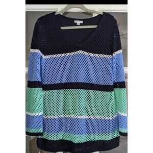 Croft & Barrow Teal Blue Navy Crochet Lined Sweater - XL