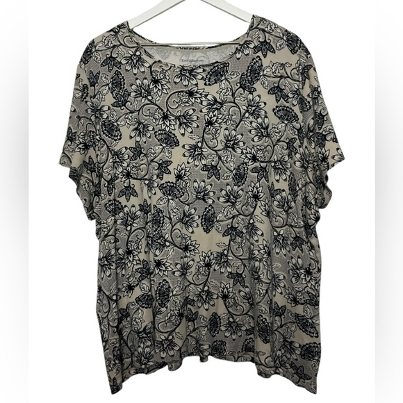 Croft & Barrow The Classic Tee Casual Everyday Travel Mature in Black/Beige Floral, size 3XL.
