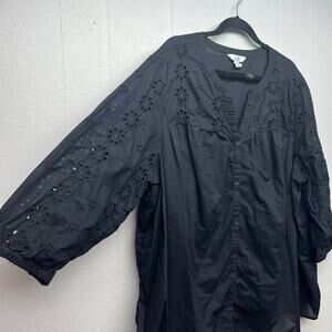 Croft & Barrow Top Women 3X 100% Cotton Eyelet Button Front Breathable Dark Boho