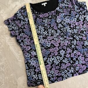 Croft Barrow Top Womens 3X Blue Floral Mesh Overlay Cottagecore Boho Y2K Fairy