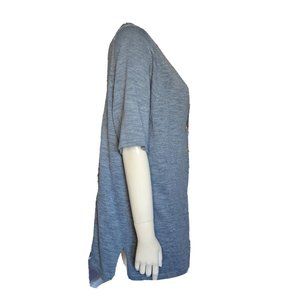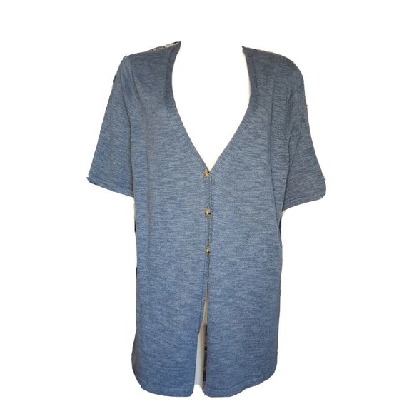 Croft & Barrow Top Womens Plus Size XXL Solid All Blue Short Sleeve Button Front