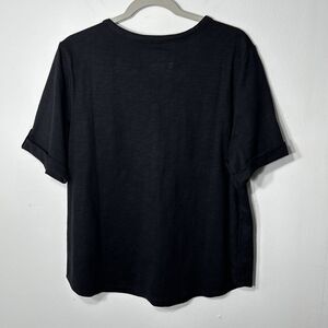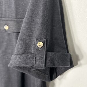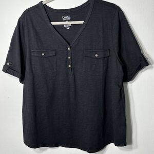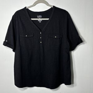Croft & Barrow Top Women’s SZ PXXL Black Roll-Tab V Neck Utility Henley Blouse